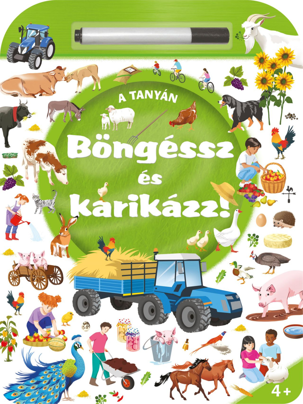 A Böngéssz és karikázz! – A tanyán a legkisebb felfedezők kedvence lesz: játékos, újra és újra elvégezhető feladatokkal vezeti be a gyerekeket a tanya izgalmas világába. A kötet lényege egyszerű és ellenállhatatlan: fedezd fel, keresd meg, karikázd be! A részletgazdag, vidám rajzokon rengeteg megbújó apróság várja, hogy a gyerekek filctollal megkeressék és bekarikázzák. A legjobb rész? A jelölések egy mozdulattal letörölhetők, így a könyv korlátlanul újrajátszható!
