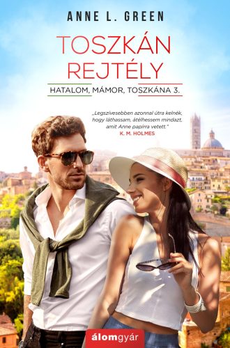 „Legszívesebben azonnal útra kelnék, hogy láthassam, átélhessem mindazt, amit Anne papírra vetett.” – K. M. HolmesAmikor egy életen át őrzött titok felszínre kerül, az mindent megváltoztatKatie és Daniele életének fonala a köztük lévő ellentétek dacára egymásba fonódott. Szerelmük gyökere mélyre nyúlik, de megpróbáltatásaiknak közel sincs még vége. Szembe kell nézniük az Allegrinik titkainak béklyóival és a birtokot fenyegető rosszakarókkal. Daniele a nyomás hatására kitörésre készül. Úgy dönt, megméretteti egy neves borversenyen a Toszkána vérét. Kétségek gyötrik ugyan a sikert illetően, hiszen jól tudja, bárhogyan végződik a verseny, az egész életük megváltozik. Ha nyernek, a dicsőségnek hála határ a csillagos ég, ám ha veszítenek, a birtok jövőjét és az Allegrinik nevét örökre megbélyegzik, de jól tudja, az az egyetlen helyes döntés, ha a szívét követi.A Toszkán rejtély a Hatalom, mámor, Toszkána-sorozat befejező része, amelyben az írónő váratlan helyzetekkel és a tőle már megszokott csavarokkal borzolja fel az olvasók kedélyeit. A történet előrehaladtával felmerül a kétely, vajon a szerelem beérik-e a legsötétebb időkben is.„Szinte ott éreztem magam a zöldellő szőlőtőkék tövében, a számban éreztem a Chianti bor ízét.” – Nikii blog„Az írónő egyszerre ejti rabul az olvasó szívét és érzékszerveit.” – Adry olvasósarka